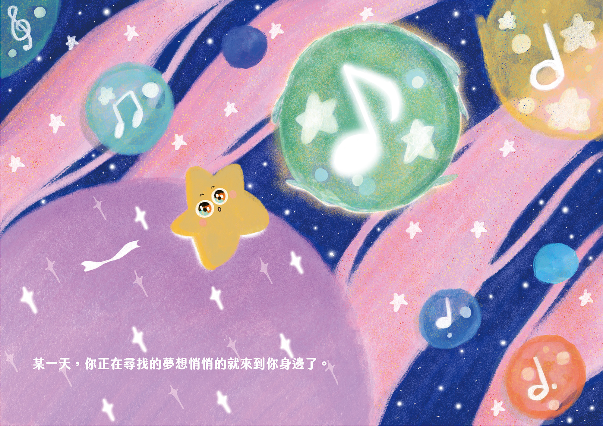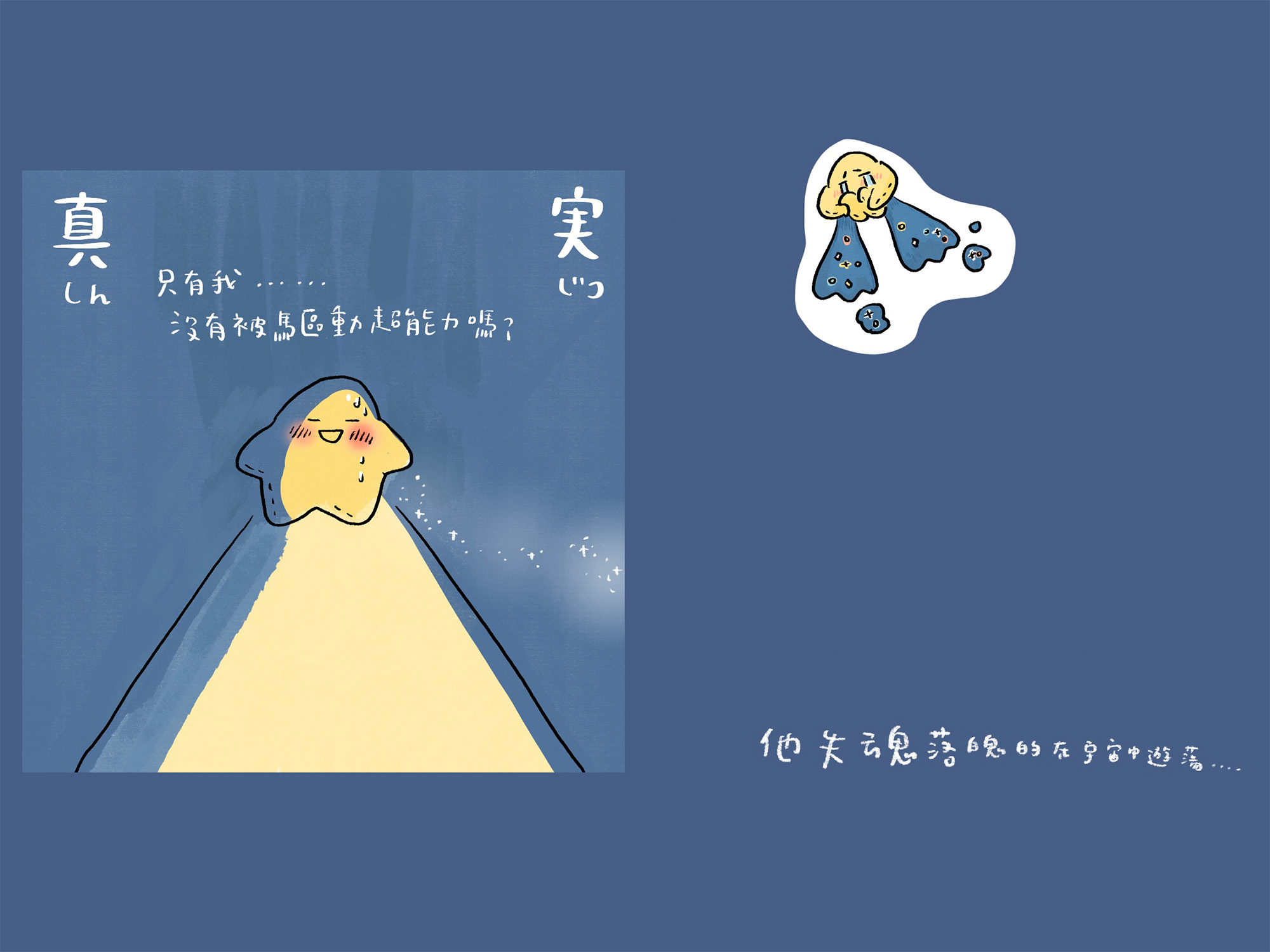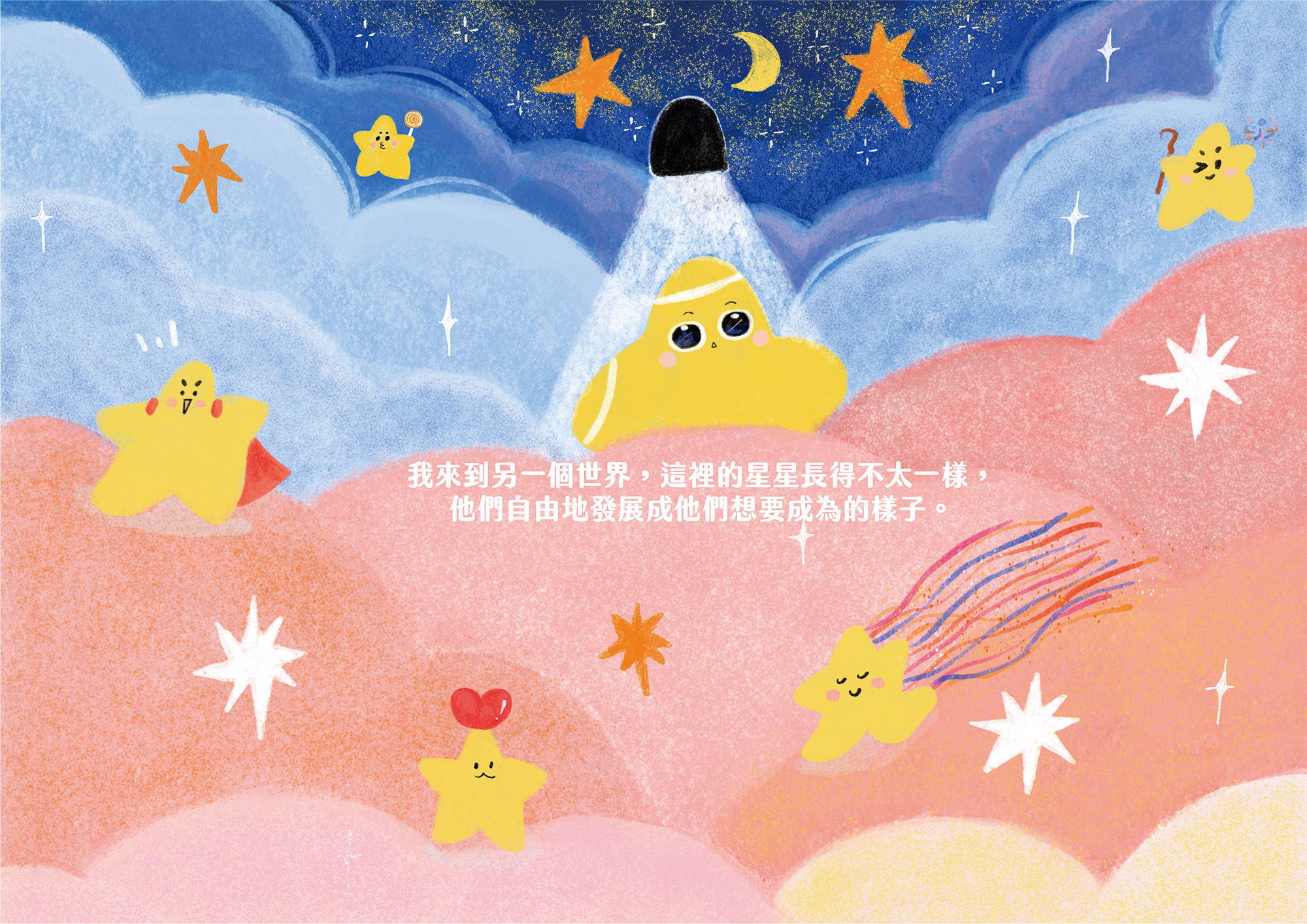 探索星星之旅繪本一書,跟我自己人生過程中很有關,雖然一直在畫貓但這次主角設定為星星,是因為我認為每個人心中都有一顆星星,隨著我們經驗累積,星星會越來越閃耀。