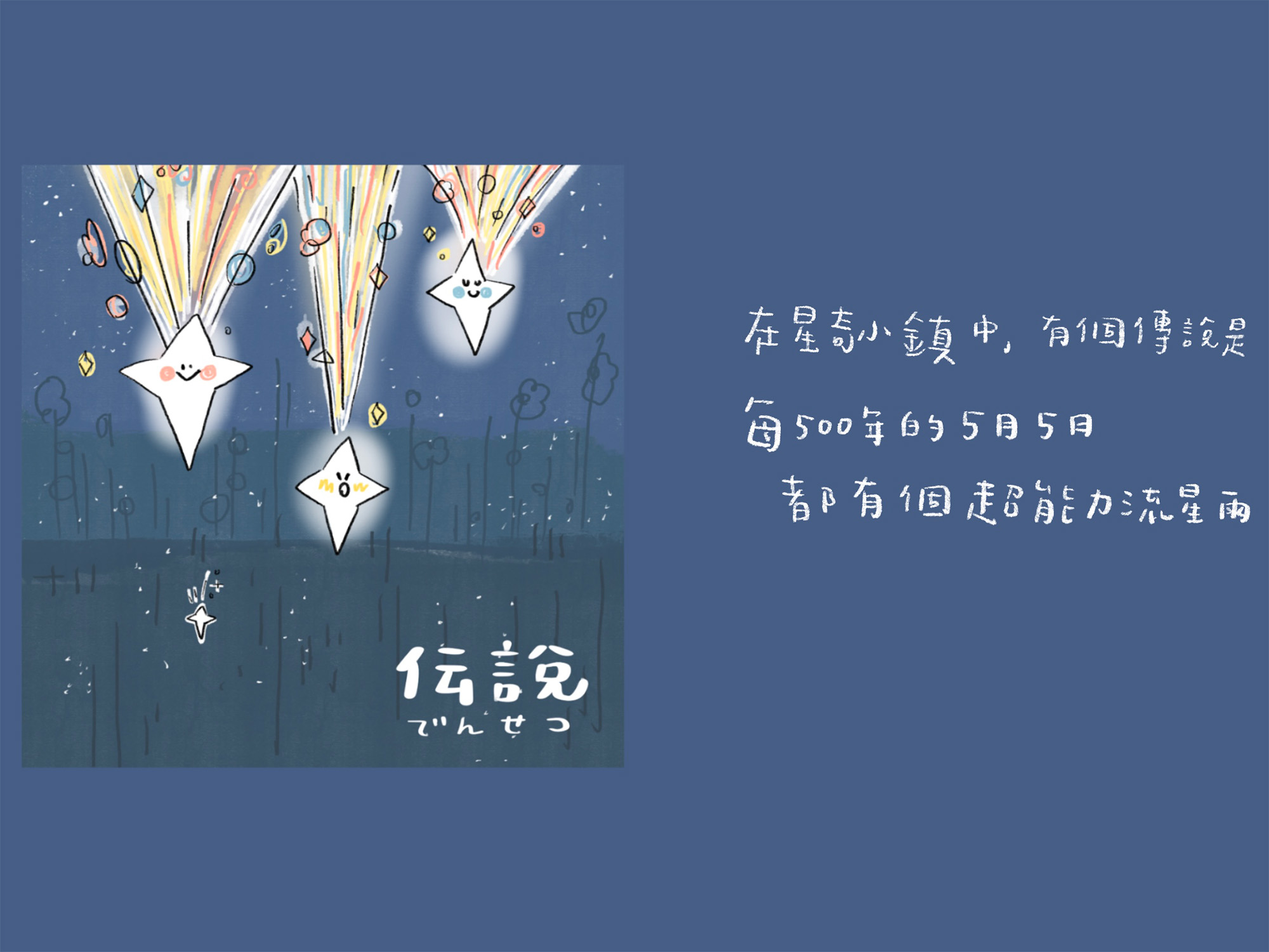 🌟故事大綱:傳說500年一次的超能力流星雨打落在平凡寧靜的小鎮中,被流星集中的人們都獲得了各自特別的超能力,唯獨阿星什麼都沒得到。阿星該何去何從,該去探索超能力流星雨的源頭還是⋯⋯?